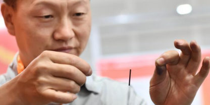6月18日,山西省太原市,職業(yè)技能大賽選手用發(fā)絲穿鉛筆芯,展示“鉛筆芯上鉆微孔”成果。當(dāng)日,第五屆山西省職業(yè)技能大賽暨第三屆全國(guó)技能大賽山西選拔賽開(kāi)賽。本屆大賽設(shè)46個(gè)賽項(xiàng),來(lái)自29支代...